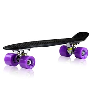 3" Wide aluminum trucks.6" x 22" Retro-style waffle-grip PLASTIC deck.59mm 78a Urethane-cored super smooth EightBit wheels.ABEC-7 High speed precision stainless steel bearings.Board includes a high-tensile allen key..
